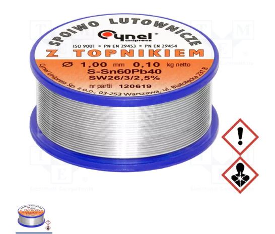 TINOL 100GR/1MM CYNEL Калай; оловни; Sn60Pb40; 1mm; 0,1kg; макара; 190°C; 2,5%;