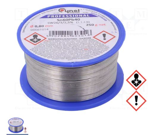 TINOL 0.250 KG 0.7MM CYNEL Калай; оловни; Sn60Pb40; 0,8mm; 250g; макара; 190°C; 2,5%;