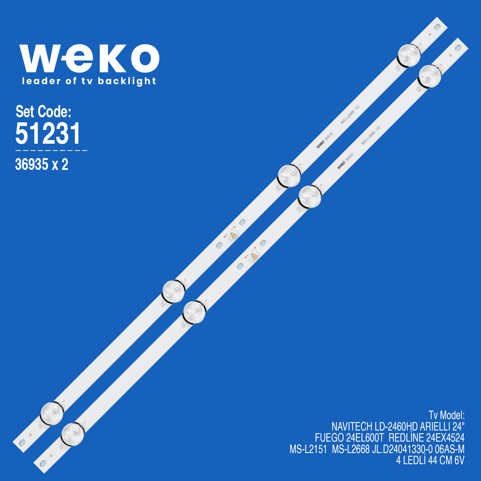 LED BAR SET ARIELLI 24" MS-L2668 V2 MS-L2151 HL-00240A30-0401S-05 A1 4LED 6V 440MM /Цената е за комплект/