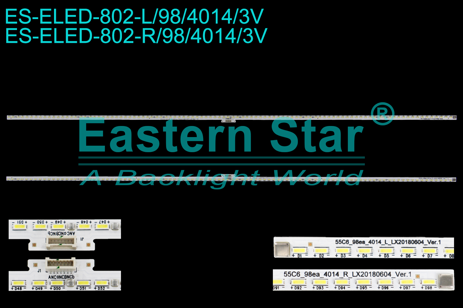 LED BAR SET TCL 55" 55C6_98ea_4014_L_LX20180604_Ver.1 & 1pcs X 55C6_98ea_4014_R_LX20180604_Ver.1 98LED 3V 601MM Цената е за 1бр. лента
