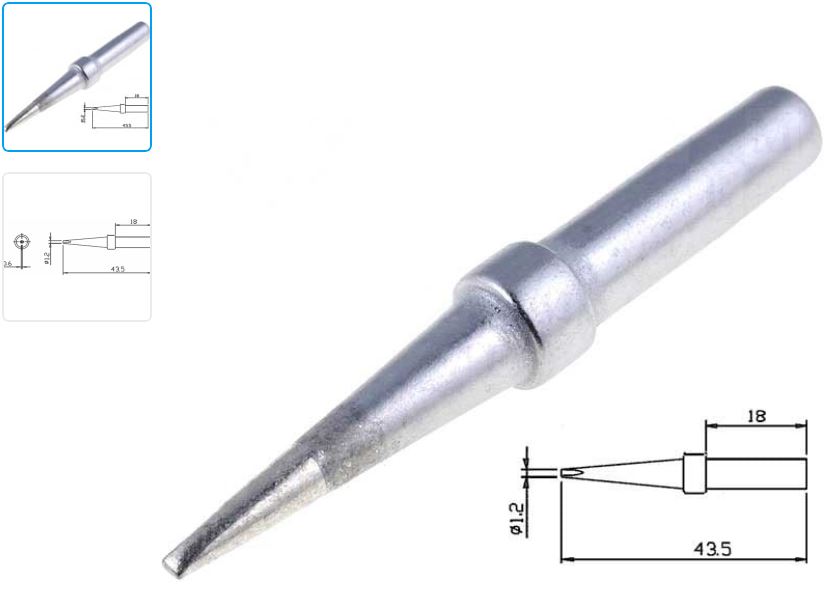 Човка SR-626 за поялник SOLOMON SL10-N, SL10-EN, SL20-N, SL20-EN, SL30-N, SL30-EN, IRON с връх 1.2mm и дължина 43.5mm.