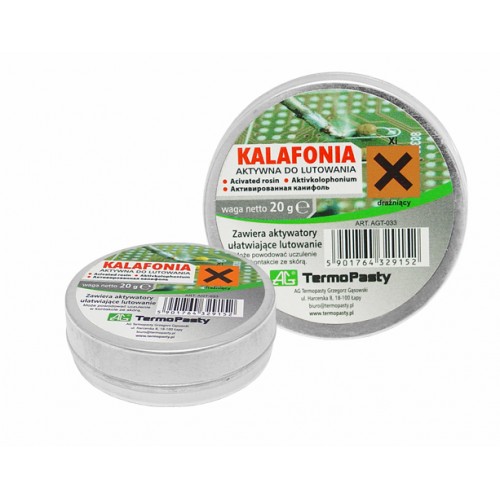 Твърд флюс за ремонтна дейност в електрониката и запояване на печатни платки.За запояване на мед и медни сплави. Отличава се с приятен аромат на борова смола по време на работа. , KALAFONIA-20 ,