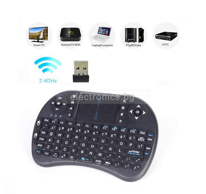 Започнете сърфирането, без да отивате до компютъра! Забравете неудобното дистанционно и управлявайте смарт функциите на Вашия телевизор бързо, лесно и удобно с компактното устройство Mini I8, което съчетва в едно - Смарт пълнофункционална QWERTY клавиатура и високо чувствителен тъч пад със scroll функция за бързо придвижване. Ергономичният дизайн на този модел Ви позволява лесна и удобна употреба, съвместим с всички модели мултимедийни плеъри. Достатъчно е да включите USB ресивъра приложен в комплекта на устройството Mini I8 към USB порта на Вашия телевизор, за да осъществите безжична връзка на управление. Честотата от 2.4 GHz Ви осигурява работно разстояние до 10 метра, без да е нужно да насочвате устройството в определена посока.