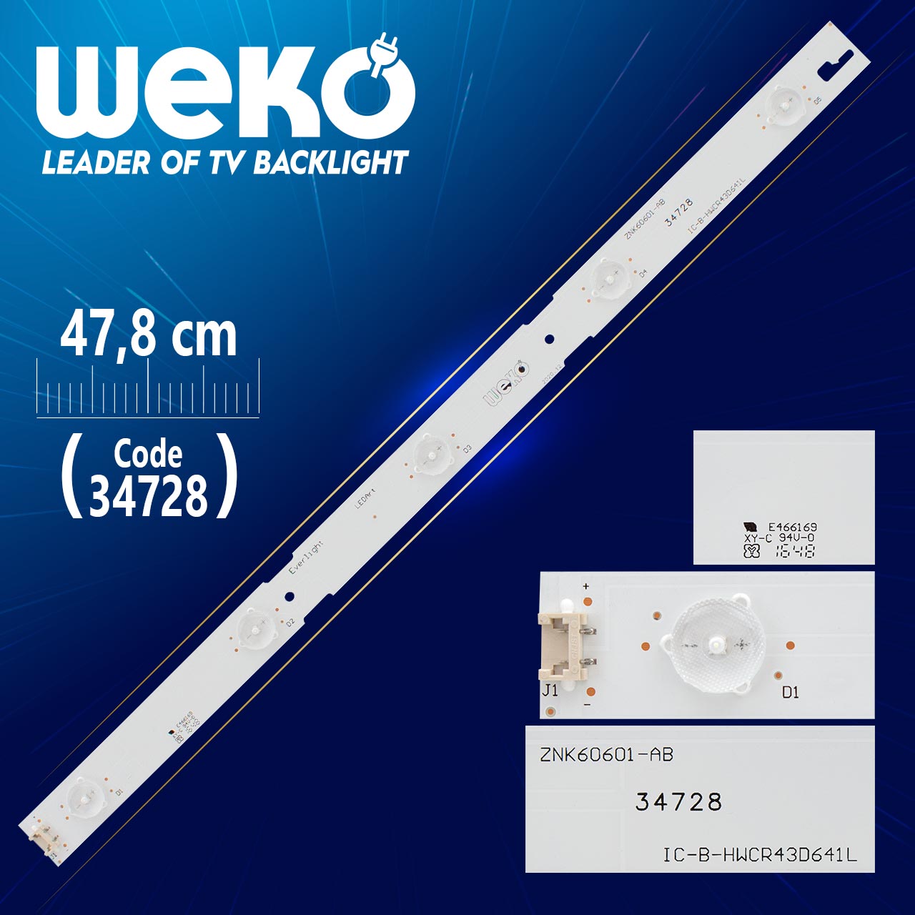 LED STRIP 43" IC-B-HWCR43D641L - (ZNK60601-AB) 478MM 5LED /Цената е за бр. лента/