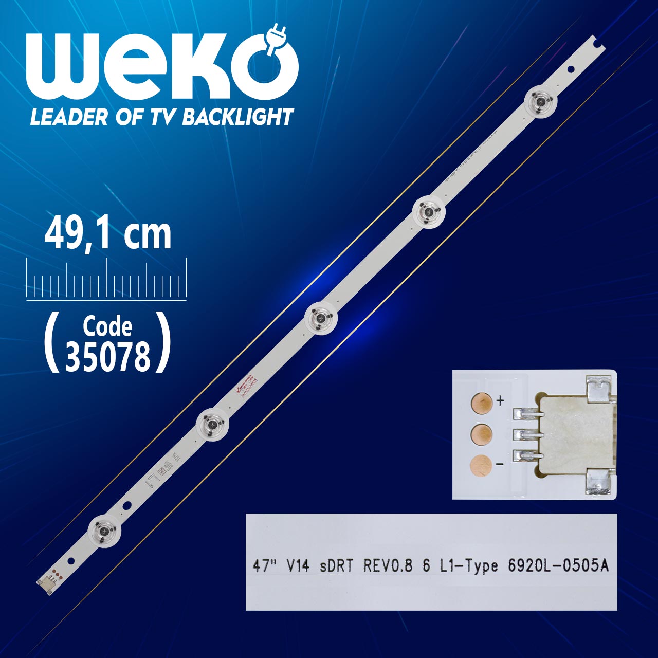 LED STRIP LG/PANASONIC 47" V14 SLIM SDRT REV0.8 6 L1-TYPE 6920L-0505A 5LED 491MM Цената е за бр.лента