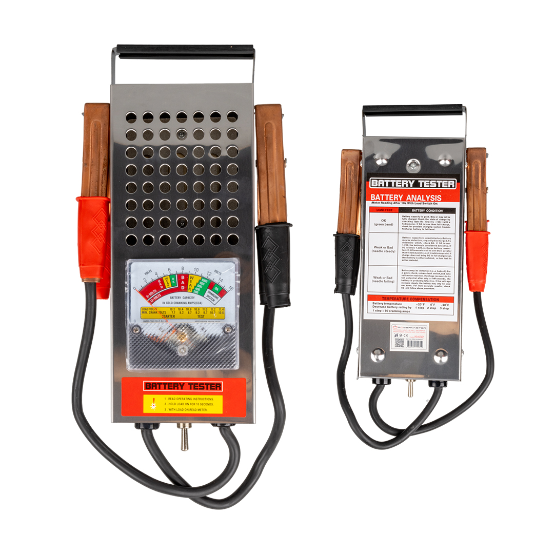 PowerMaster PM-19432 е надежден и ефективен аналогов тестер за батерии, предназначен за професионална употреба. Благодарение на широкия диапазон на напрежението и високата стойност на ампеража, той позволява точно тестване на различни батерии. Връзките с медни щипки и здравата структура гарантират издръжливост за дългосрочна употреба.