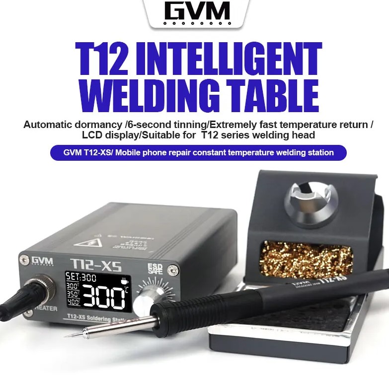 Спецификация: Марка: GVM Име на продукта: Станция за заваряване при постоянна температура за ремонт на мобилни телефони Модел: Gvm T12-XS Нетно тегло: Около 800гр Бруто тегло: Около 1200гр Размер на продукта: 150*90*43 мм Размер на опаковката: 195*160*105 мм Температурен диапазон: 80~480°C Автоматичен режим на готовност: Поддръжка Автоматично заспиване: Поддръжка Диапазон на напрежението: AC 90~230V, 50/60Hz, 5A Пикова мощност: 72W Метод на нагряване: Интелигентен контрол на температурата на Pid Предварителна настройка на температурата: 300/350/400°C Метод на показване: LCD дисплей Работна температура: 10-40°C/50-122°F Пакетът включва: 1 х Станция за запояване 1 x Накрайник за поялник 1 х гъба за почистване 1 х топка от медна тел 1 x Държач за спойка 1 х Силиконова подложка 1 x Дръжка за станция за запояване 1 x заземяващ проводник 1 x Захранващ кабел