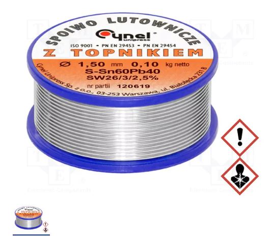TINOL 0.100KG 1.5MM CYNEL Калай; оловни; Sn60Pb40; 1,5mm; 0,1kg; макара; 190°C; 2,5%
