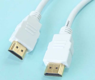 3m бял кабел с накрайници HDMI мъжка букса - HDMI мъжка букса. Версия HDMI 1.4 High Speed + Ethernet. Обслужва 3D с резолюция до 1080p, съответства на HDCP.